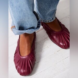 BNIB Free People Burgundy Ballet Flats in shade Wild Mulberry Leather Size 9