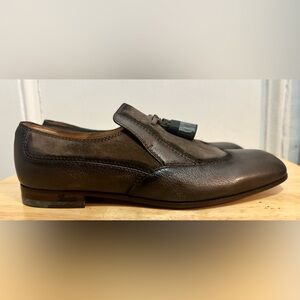 Brand new in box, unworn Men’s Gucci Loafera in mink grey suede and leather. Size 10. Buy with confidence. You will not find new Gucci shoes for this price!!!!