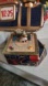 Colorful animated vintage porcelain music box featuring a train design.Inside is an animated Santa's Workshop scene.It truly is beautiful.Box is worn from storage & moving but doesn't not effect item as you can see. Includes vibrant red, blue, and gold accents. Perfect for holiday decor.