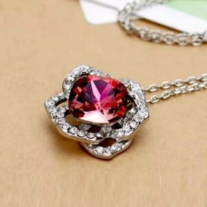 BNIB! NEOGLORY SWAROVSKI CRYSTAL & AUDEN RHINESTONE ROSE PENDANT - PLATINUM PLTD