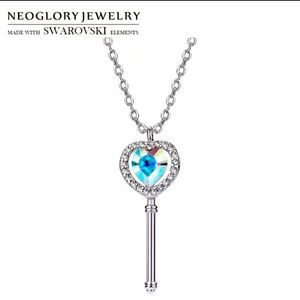 BNIB! NEOGLORY SWAROVSKI CRYSTAL LOVER’S KEY PENDANT IN PLATINUM PLTD 925 SILVER