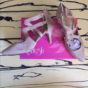 women's pointy toe crossing strap zip closure suede high heel sandals