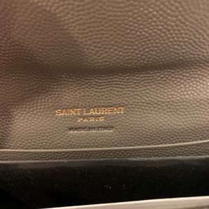 This is a brand new YSL Saint Laurent Small Envelope Wallet in the color Fog (gray / grey). Purchased from Neiman Marcus. Never carried. Pristine. Comes with everything you see in the photos. Current retail price is $545.
