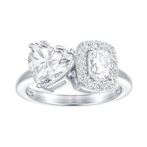 BNIB~3.45 Ct. DIAMONIQUE Heart & Cushion Halo Design Toi et Moi Ring Sz 8
