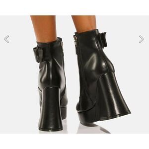 Lamoda Hardly Platform Boots live big and buy new shoes! These ankle boots have a vegan leather construction, adjustable lace-up ties, an adjustable ankle strap with a D-ring buckle, inner zip closures, and a flared block heel.