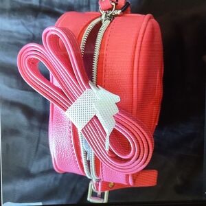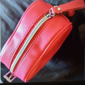 It has never been taken out of the packaging. Photos from online have been used to show the actual bag and color. It comes with a detachable crossbody strap. This can be used as a purse, makeup bag, are just for a night on the town. Inside of the bag is light pink lined with the Jeffree Star logo.