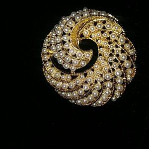 BNWB Beautiful Anne Klein pearl swirl pin. This pins clasp is missing a piece but still works just fine. This is a beautiful piece and part of Anne Klein's pin collection. Get gorgeously glammed up with this stunning imitation pearl and swirl pin from Anne Klein. Crafted of gold-tone mixed metal. Approximate diameter: 8mm.💯authentic as all my brands are.