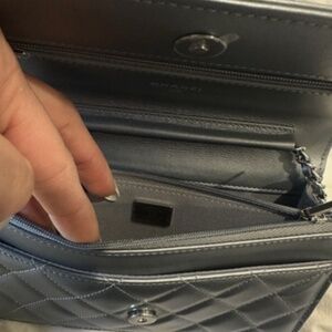 BNWB CHANEL classic wallet on chain WOC silver/pale blue leather iridescent