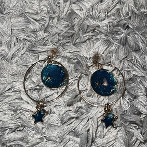 BNWOT Celestial/ Star and Moon Shape Blue and Gold Earrings