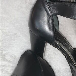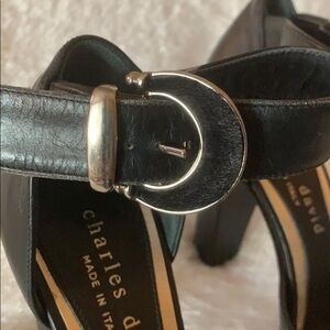 BNWOT Beautiful chunky heel, black leather peep toe shoes by Charles David .. hardware is silver with some kind of calf (maybe) hair .. All my items come from smoke and pet free home 🏡. Bundle today to save on shipping! Thanks for looking in my closet!