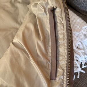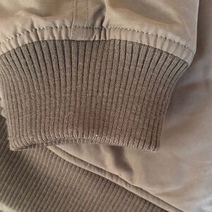 Eddie Bauer quilted jacket. Soft beige fabric. Comfortable and stylish.