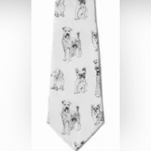 Charming white ivory tie featuring hand-sketched dogs. A unique accessory for any occasion.