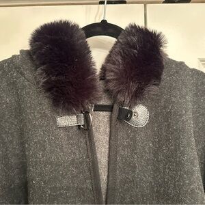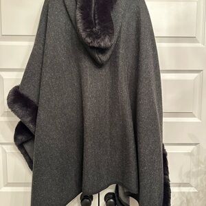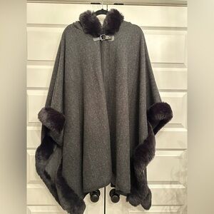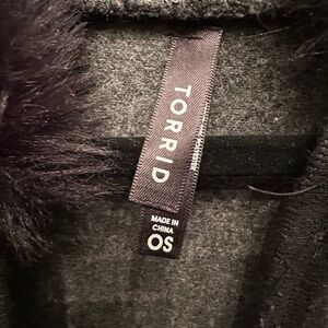 BNWOT TORRID DARK GRAY/BLACK CAPE JACKET WITH FUR TRIMMED HOOD