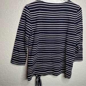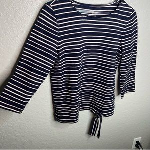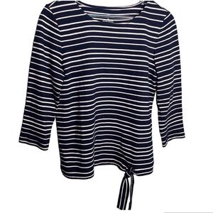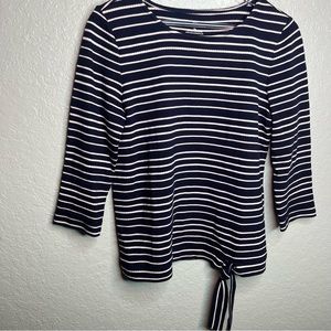 BNWOT Talbots Striped 3 Quarter Inch Sleeve Top W/ Tie Knot