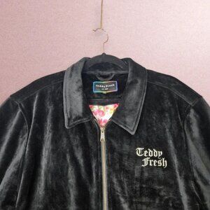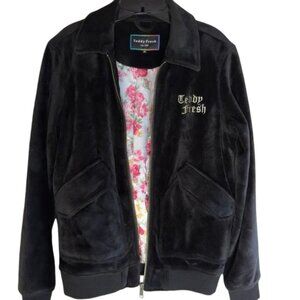 BNWOT Teddy Fresh Black Velour Full-Zip Bomber Jacket, Size XS