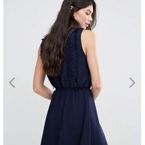 Brand new without tag, Greylin Gianna Fringe Trim Shirt Dress in navy blue, size large.