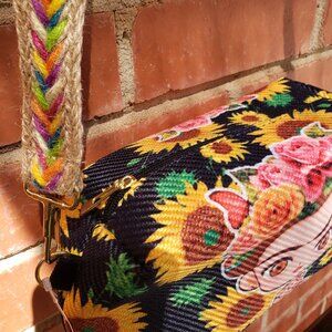 BNWT ARTESANTA Sunflower Frida Kahlo -small - made in MX (OS) black / yellow shoulder strap