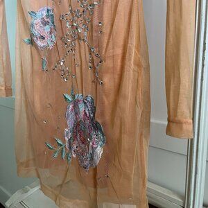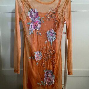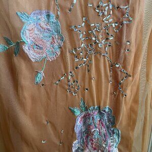 BNWT ASOS DESIGN mesh overlay embroidered florals (6) shimmer orange