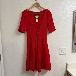 BNWT Anthropologie Maeve Red Juliet Corset Dress Short Sleeve Size 4