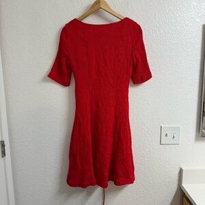 Maeve by Anthropologie red Juliet corset dress, textured crinkle fabric, longer length short sleeves