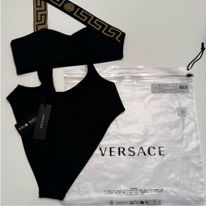 BNWT Authentic VERSACE Womens One Piece Swimsuit Black Gold Greca Design Size 2