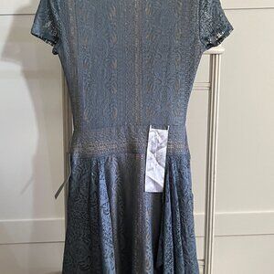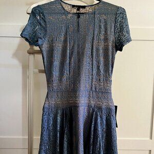 BNWT BCBGMAXAZRIA Aileen Blue Depth Lace Handkerchief Hem (XS)