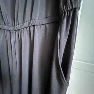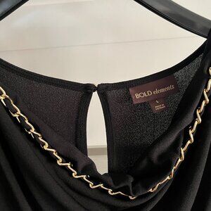 BNWT BOLD ELEMENTS black jumpsuit gold chain neckline (L) POCKETS
