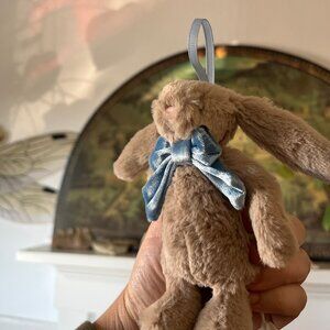 BNWT Bashful Beige Bunny with Blue Bow Jellycat Ornament