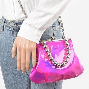 BNWT Brand New Holographic Ball Chain Top Handle ClutchBag Crossbody Bag