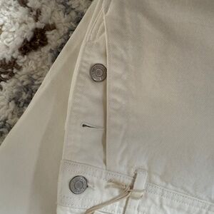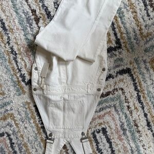 Z-Supply Brinley Denim Overalls in Bone. Style#: ZP233940B. Full-length overalls. 3 button side closure, hook closure at the chest. 2 side pockets, two back pockets, large chest pocket. BNWT. Size M.