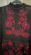 Chic black dress with vibrant purple floral patterns. Long sleeves and elegant style.