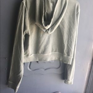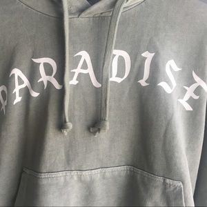 BNWT Never Worn! Slightly Cropped Hoodie with longer sleeves and "Paradise" written in English Block Writing Sea Foam Green Color 100% Cotton Lining