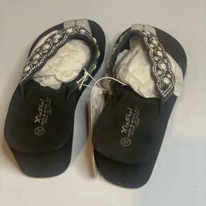 BNWT HXiaohei Sparkle Black and White Women's Fit Flop Style Sandals size 39