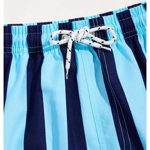 BNWT Isabelle LaRue Men's Light Blue and Navy Blue Stripe Swim Shorts - Medium