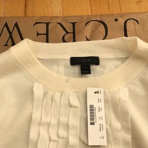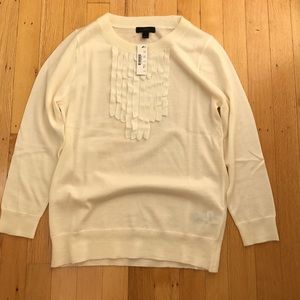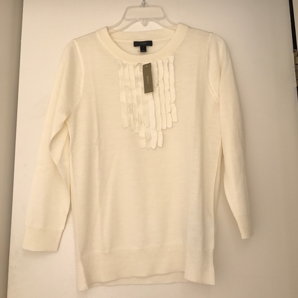 Beautiful brand new with tag J-Crew sweated with ruffles. Ivory color. The last photo is a different color on the model to show you how it fits. Size small. A bit snug for me but will be beautiful on someone else!