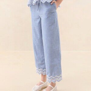 BNWT Loeffler Randal Blake Blue Gingham Emboidered Pant