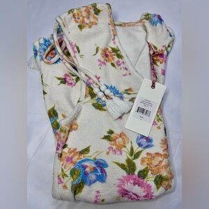 Cut along an easy V-neck, LoveShackFancy's sleeveless Bascom romper is a comfy one-and-done in their floral cotton terry. Drawstring straps. Elasticized waistband. Pull-on style. This is an older style. Never worn and has the tags still attached. Such a flirty and fun piece!