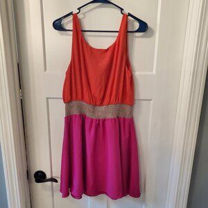 Orange/magenta two toned color sleeveless dress w/ elastic waist