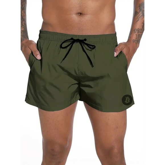 BNWT Men's Isabelle LaRue Army Green Bitcoin Swim Shorts