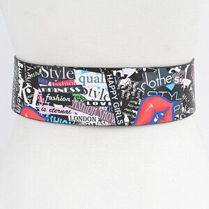 BNWT Mix Color Magazine Printed Fashion Wide Belt