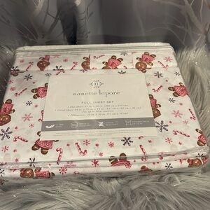 BNWT NANETTE LEPORE Christmas Pink Gingerbread Girl Full Size 6 Piece Sheet Set