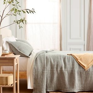 New with tags, Quince Organic Cotton Channel Stitch Coverlet Set with two matching pillow shams. KING/CAL KING - “Green” Sold out online for $170. Price is firm.