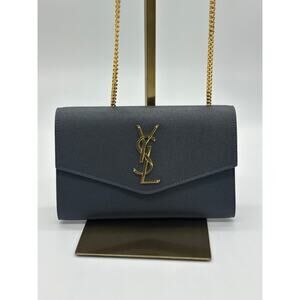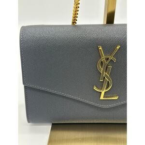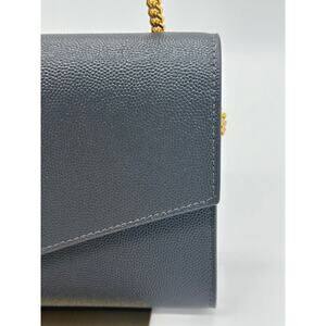 THIS IS A BRAND-NEW YSL UPTOWN WALLET ON CHAIN. THIS COLOR IS NOW RARE AS GREY IS NOT MADE IN THE SHINY LEATHER CURRENTLY, ONLY BLACK.