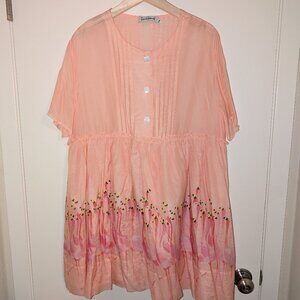 The Howard Dress empowers you to channel your inner flamingo, preferably by eating a bunch of shrimp, screaming, and trying to stand on one leg. Cotton-silk voile lends a sleek, supremely soft feel to this boxy mini, while a flamboyance of flamingos ring its pink perimeter.