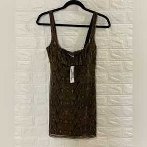BNWT SEXY GORGEOUS URBAN OUTFITTERS SNAKESKIN PRINT BROWN MINI DRESS | STRETCHY | MESH