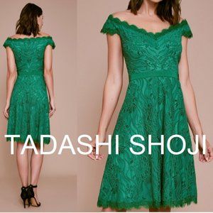 BNWT TADASHI SHOJI COLLIS OFF THE SHOULDER LACE DRESS FORMAL PARTY GREEN SZ 4