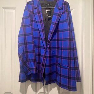 Brand new with tags royal blue plaid blazer from Torrid. Pink stripes on the plaid, single button closure