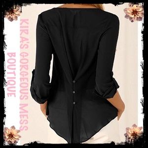 BNWT V-Neck Button Detail Dip Back Solid Blouse; Features: Fashion & Classical style;Chiffon;Long sleeves;V-Neck,Loose,