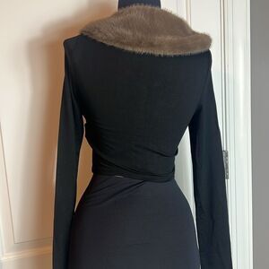 BNWT - WEWOREWHAT BLACK AND BROWN CUPRO AND FAUX FUR COLLAR CROP CARDIGAN - XS