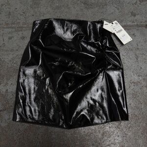 BNWT Y2K Zara Pleated Faux Leather Mini Skirt Black XS